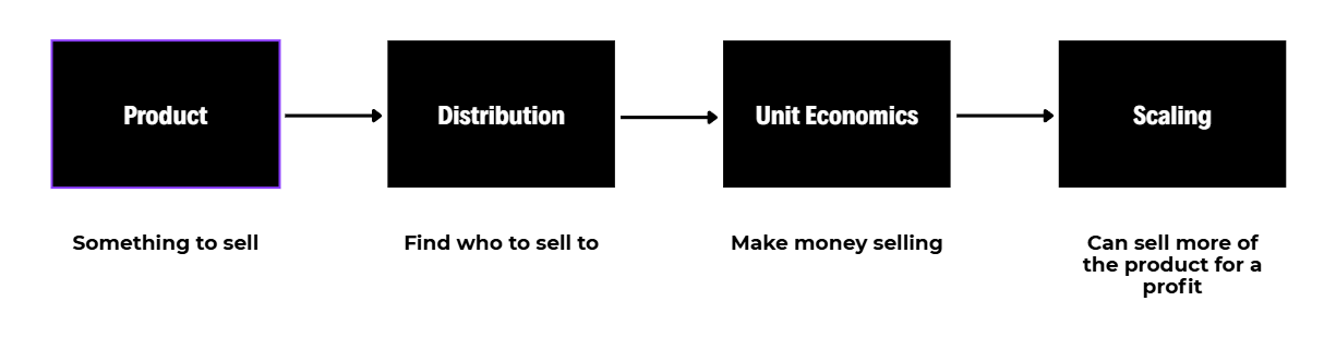 Scaling: Ensuring that product, distribution, and unit economics scale.